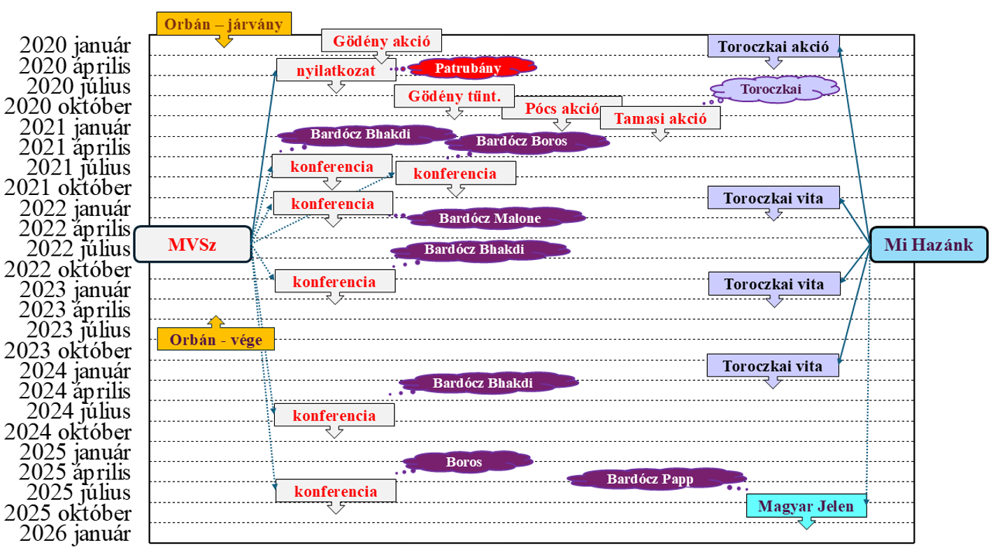 4.ábra: A hazai SARS-CoV-2 vírus- és vakcinatagadók (MVSz – Magyarok Világszövetsége és Mi Hazánk és szimpatizánsaik) fontosabb akciói