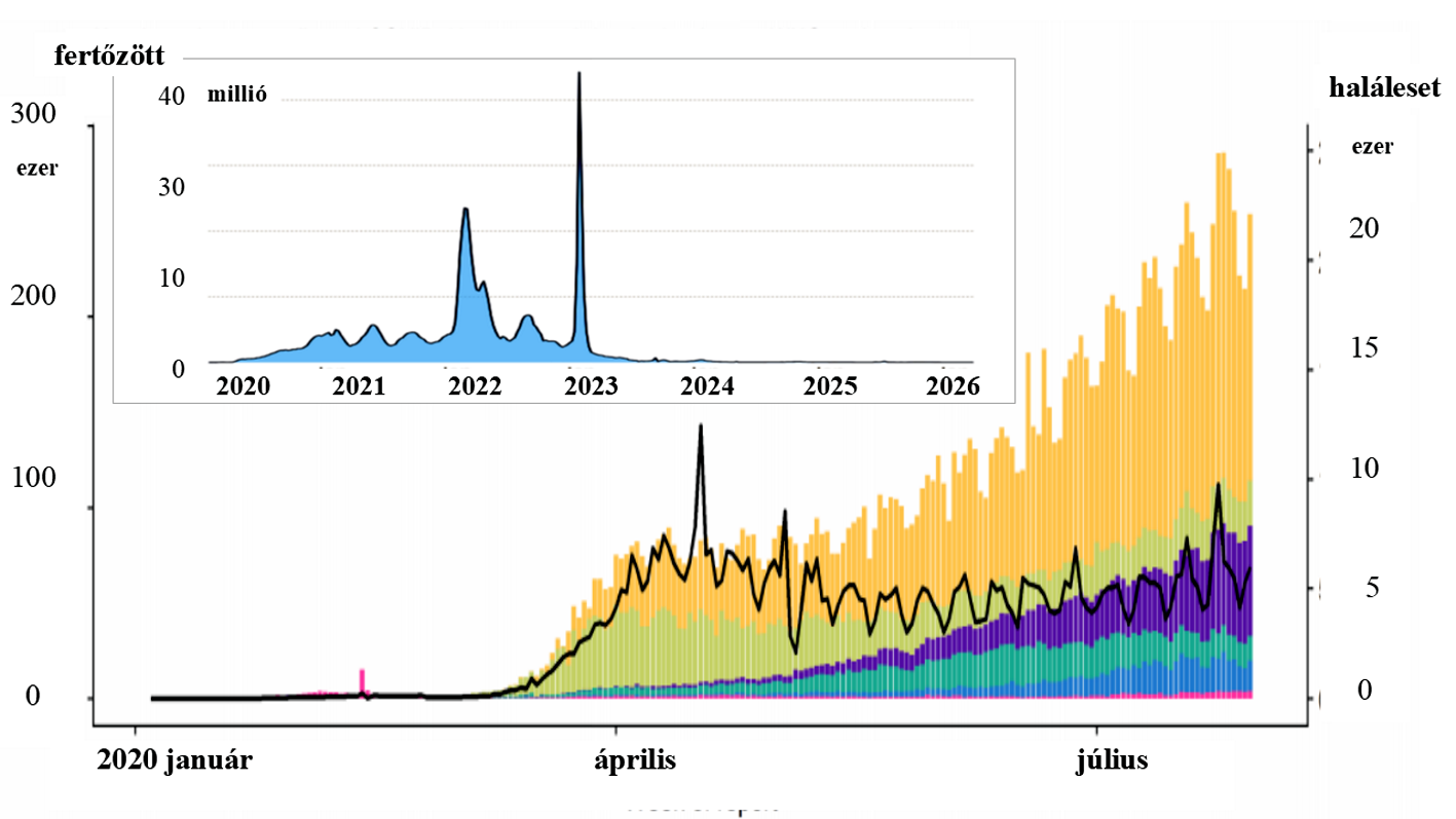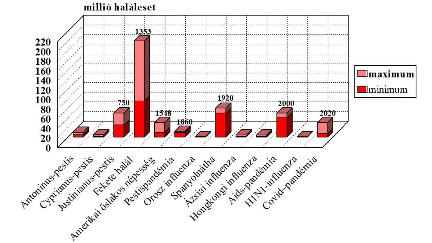A 2020-as pandémia lefolyása 7-30 millió körüli áldozattal járt, így az időszámítás utáni hét legjelentősebb járvány egyike (6-7. ábrák). Relativizálása – ahogyan az MVSz és a Mi Hazánk teszi – szerintem elképesztő felelőtlenség, bárki is tegye, politikailag ebből tőkét kovácsoló tudatlan vagy a géntechnológia ellen elkötelezett aktivistává váló, mint Pusztai Árpád özvegye Bardócz Zsuzsanna, aki mára hitelesíteni igyekszik pár konspirációs teóriát, csak figyeljenek rá.