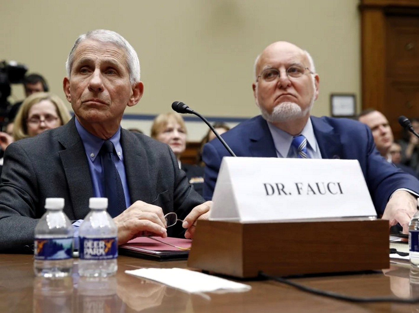 15.kép: Anthony Fauci, a Nemzeti Allergia- és Fertőző Betegségek Intézetének igazgatója, valamint Robert Redfield, a CDC igazgatója 2020. május 12-én a szenátusi bizottság előtt (Fotó: Patrick Semansky/AP)