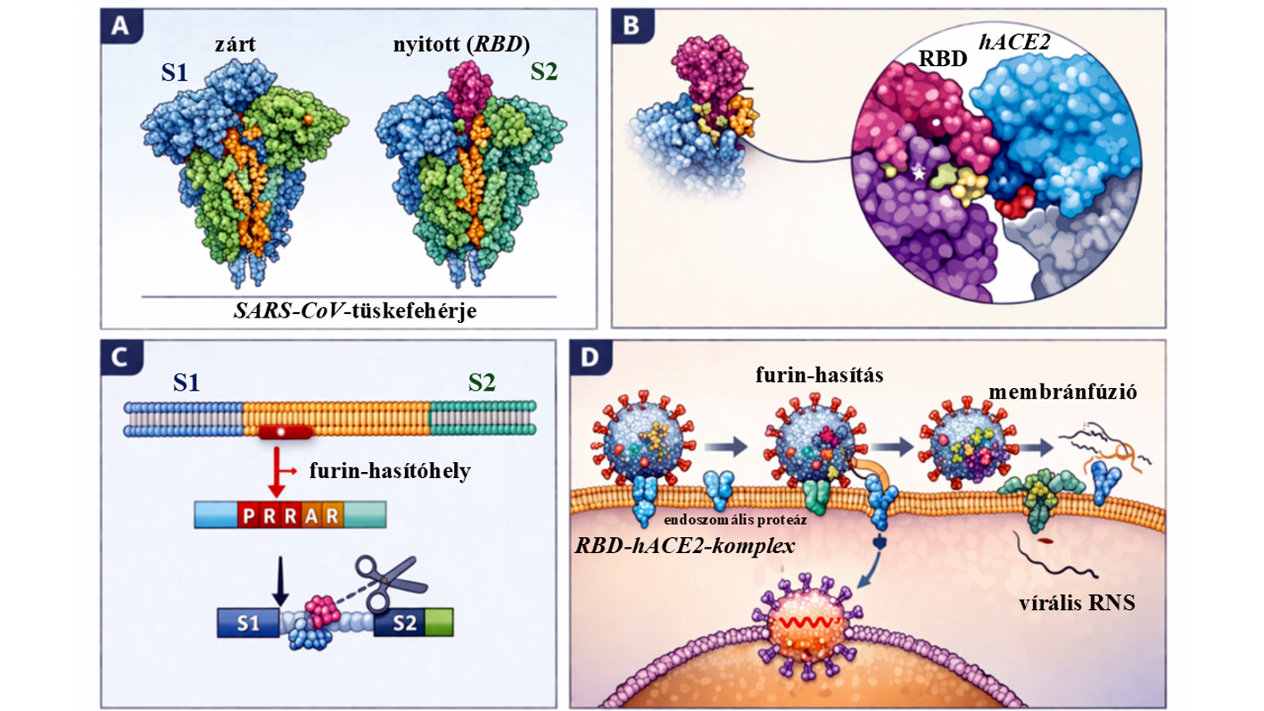 3./ A humán ACE2-receptor kapcsolódása a SARS-koronavírus tüskefehérjéhez a projekt egyik központi kritikus pontja: A dokumentum több helyen közvetlenül az ACE2-receptorra építi a kísérleti stratégiát: a tüskefehérje kötődésének vizsgálata humán ACE2-höz, ACE2-kötésre releváns mutációk modellezése, alacsony gyakoriságú, de nagy hatású RBD-variánsok (a tüskefehérje Receptor Binding Domain-je, ami az ACE2-höz kapcsolódik) vizsgálata.